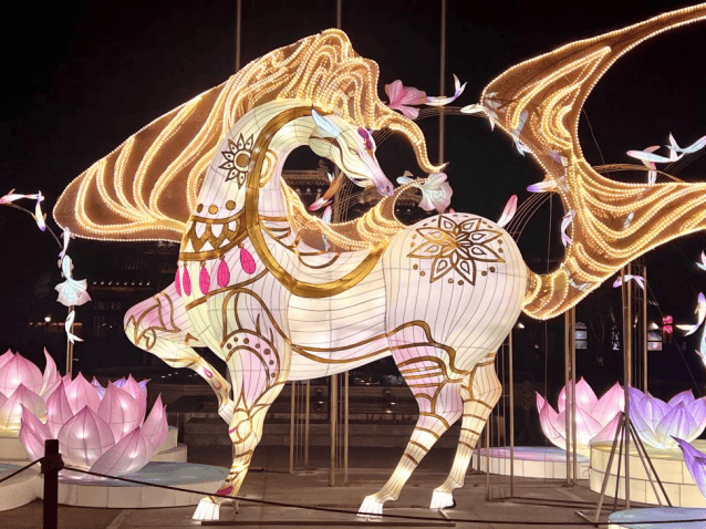 正在厦门SM“灯影妙会”上,佛山彩灯“保守新制”,打制高4。8米的《马踏飞燕宫灯》灯组。灯组融合保守宫灯取“马踏飞燕”意象,沿用佛山走马灯的动态光影道理,通过灯光投射取机械传动,呈现骏马腾空的灵动结果,搭配、鲤鱼纹样,将佛山彩灯的工艺巧思取闽南的吉祥文化相融,成为厦门新春的网红打卡地。
